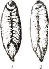 l - bob cu forma ovala ; 2 - bob cu forma lunguiata