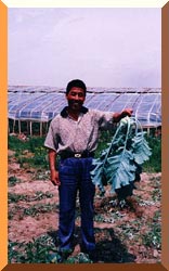 - Intr-o ferma ecologica, cum este aceasta, toate lucrarile se executa manual. Pamantul nu se ara cu tractorul, ci se sapa cu sapaliga de lemn si doar in cazuri extreme cu cea metalica, plantele se insamanteaza fir cu fir, se stropesc cu furtunul si nu au parte de ingrasaminte chimice - mai exact de acele nelipsite 'E-uri' mentionate pe mai toate produsele alimentare (deosebit de nocive sanatatii!). Fertilizarea solului se face numai natural, cu balegar si gainat de pasare. D-nul Cheng Ming are o singura obsesie: sa nu bruscheze sub nici o forma plantele!