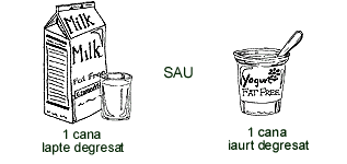 Consumati lapte degresat (smantanit) sau partial degresat (1%). Folositi iaurt degresat sau partial degresat. Acestea contin mai putine grasimi totale, saturate si colesterol.