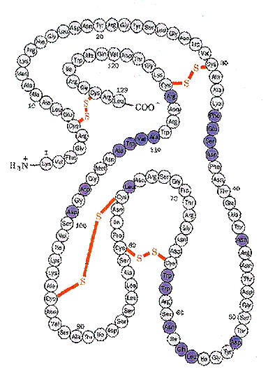 Structura primara a unei proteine este determinata prin numarul si succesiunea specifica a amino-acizilor din catena polipeptidica. Structura secundara a unei proteine este determinata de aranjarea in spatiu a catenei polipeptidice si de legaturile care se stabilesc intre catene. Cercetarile in domeniu au sugerat ca macromolecula peptidica nu are forma extinsa, ci adopta o forma rasucita sau incretita. Structurile tertiare : structurile secundare sunt determinate de legaturile de hidrogen dintre grupele CO si NH ale catenelor polipeptidice. Intr-o elice L foarte lunga , se pot stabili legaturi slabe, dar numeroase , si intre grupele R proeminente spre exterior , ale amino-acizilor. Sunt folosite 4 feluri de legaturi intre grupe R apartinand aceleiasi catene polipeptidice prin care se poate realiza o structura tertiara. La adoptarea si mentinerea unei anumite conformatii tertiare contribuie uneori ioni metalici sau, in proteide, grupele prostetice.