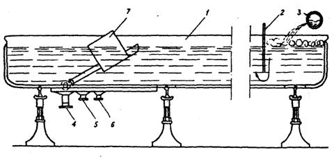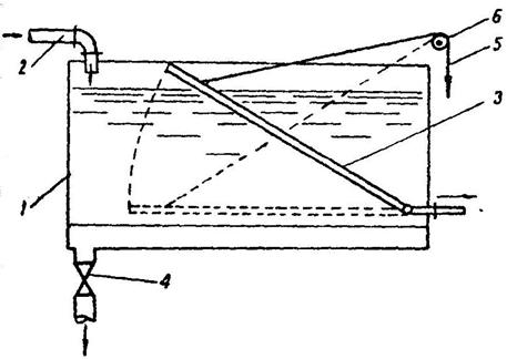 Acestea pot fi simple rezervoare de forma paralelipipedica in care se introduce lichidul cu suspensie pe partea superioara (2) si se lasa pana se realizeaza sedimentarea produselor solide.