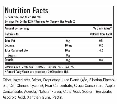 O combinatie unica de fitonutrienti proveniti din fructul de gac, fructul de liciu chinezesc, catina si fructul de cili. Actioneaza sinergic pentru mentinerea unei sanatati optime.