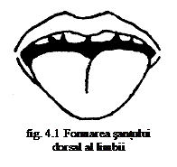 se retrage puternic in fundul gurii; cu limba ghemuita in fundul gurii se