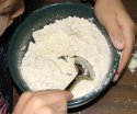 vas amesteca cu lingura faina, bicarbonatul, sarea si scortisoara;