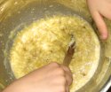ouale si bananele pasate la compozitia de unt si amesteca pana sunt