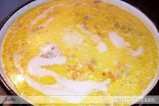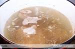 carnea . Zeama se strecoara si se adauga la ea legumele