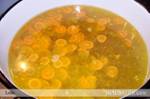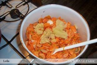 Morcovii si patrunjelul se curata si se taie felii subtiri,