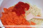 Uleiul 50 ml , se incinge se calesc pe el morcovii , ceapa si ardeii si pe urma