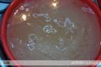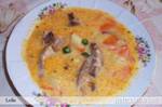 carnea de pe os dupa ce a fiert si se taie bucatele. Supa se strecoara si se