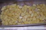 Cartofii se curata si se taie cubulete.
