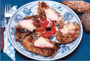 Bate feliile de muschi cu ciocanul de snitele pana cand se subtiaza uniform, apoi condimenteaza-le cu sare si piper. Treci fiecare felie prin faina, ou batut si apoi prin pesmet si prajeste-o in unt, pe ambele parti. Asaza feliile prajite intro tava unsa cu unt si pe fiecare bucata de carne pune cate o felie de costita sau sunca. Peste acestea rade cascavalul si poti sa torni si ou batut daca a mai ramas. Pune tava la cuptor pentru 20 - 30 de minute. Se serveste cu garnitura de cartofi si cu salata de sezon.