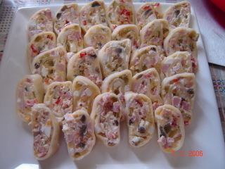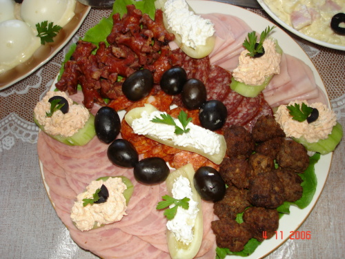 ardei cu crema de branza, arici - frigarui aperitiv - chiftelute, mozarella