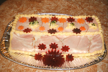 verzi si jumate negre),250g sunca,4 oua,150g faina,4 linguri ulei,150ml lapte,1