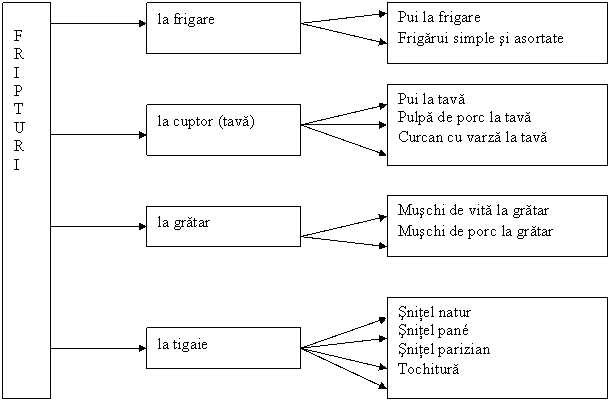 10. Clasificati fripturile dupa procesul termic aplicat pentru obtinerea lor, precizand cate un sortiment reprezentativ pentru fiecare grupa.