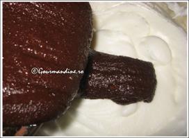 Peste aceasta spuma adaugam compozitia cu cacao pregatita mai inainte si amestecam cu spatula pana obtinem o compozitie omogena.