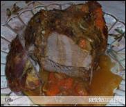 Cand este pe jumatate facuta se adauga zarzavaturile. In timpul tratarii se stropeste cu jiul format. Se raceste, se portioneaza.