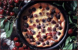 Clafoutis cu cirese          Ingrediente (pentru 4 persoane): 500 g cirese, 3 oua, 3 linguri faina, 3 linguri zahar pudra, 2 plicuri zahar vanilat, 1 lingura zahar tos, 200 ml frisca nebatuta, 200 ml lapt
