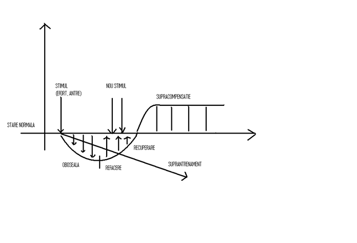 cand refacerea + recuperarea este completa , organismul se reface pana la starea normala si peste starea normala apare starea de supracompensatie=progress