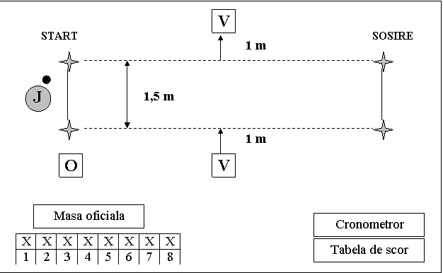 Jucatorul va fi cronometrat din momentul in care oficialul da startul pana cand participantul trece linia de sosire printre cele doua jaloane si prinde mingea pentru a stopa driblarea.