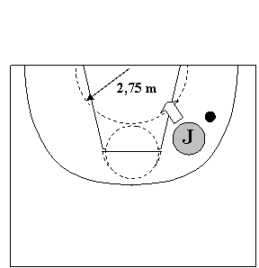 Jucatorul dribleaza spre cos si incearca sa inscrie aflandu-se in afara unui arc cu raza de 2.75. Aceasta incercare trebuie sa se realizeze din orice punct din afara arcului de 2.75m marcat de o linie intrerupta. Acest arc se intersecteaza cu cercul imaginar care are ca diametru linia de aruncari libere.