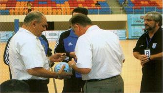 Arbitrii si, daca este necesar, delegatul verifica mingile si presiunea aerului din acestea (este prea tare sau prea moale?). |