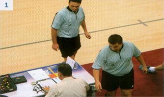 Cronometrorul se ridica, fluiera si cheama arbitrii. |