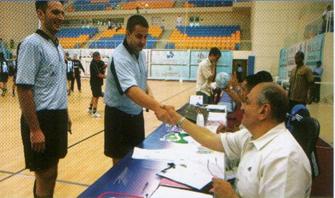 Verificati dreptul de participare la joc al jucatorilor (data, semnatura, verificarea cu listele oficiale cu jucatori). La jocurile organizate de IHF sau de federatiile continentale, aceasta verificare va fi efectuata de catre delegatul tehnic, in timpul sedintei tehnice.