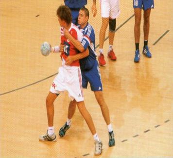 Problema: Prima repriza s-a incheiat prea tarziu (al treilea paragraf al regulii 2:7). Solutie: Timpul de joc al celei de-a doua reprize este redus cu timpul cu care a fost "prelungita" prima repriza. Scorerul, cronometrorul si oficialii echipelor trebuiesc informati despre acest lucru. Problema: Arbitrii si cronometrorul nu sunt de acord asupra timpului de joc trecut. Nota: Arbitrii au ultimul cuvant de spus asupra timpului de joc, si de aceea trebuie sa aiba propriile cronometre (exceptie facand jocurile IHF si continentale, acolo unde delegatul tehnic preia responsabilitatea timpului de joc). Ceasurile trebuiesc confruntate imediat ce se aude fluierul de final, pentru a impiedica jucatorii sa iasa de pe teren prea tarziu. Cronometrorul trebuie sa opreasca ceasul atunci cand da semnalul de final. Jucatorilor si oficialilor li se cere sa ramana pe teren pana la clarificarea incertitudinii asupra timpului de joc. Problema: Dupa o infractiune, sunetul automat de final se aude cu putin inainte sau concomitent cu fluierul arbitrului. Solutie: Infractiunea este sanctionata, pentru ca infractiunea a fost comisa in timpul de joc (primul paragraf al regulii 2:4). Jocul este incheiat de catre arbitrii (nu de catre cronometror) dupa determinarea rezultatului aruncarii libere sau aruncarii de la 7m. Problema: Delegatul tehnic contesta impartialitatea scorerului sau cronometrorului. Exista suspiciuni intemeiate ca scorerul sau cronometrorul au facut greseli intentionate (de ex. cu privire la restul timpului ramas de joc sau al timpului de eliminare ramas, schimbare gresita). Solutie: Inregistrarea incidentului in raportul de joc, prezentand motivele si momentul cand scorerul sau cronometrorul au fost eliberati din functie. |