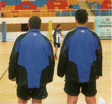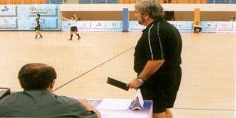 Scorerul supravegheaza jucatorii si oficialii de echipa de pe partea sa. Ei au dreptul sa intre pe teren. |