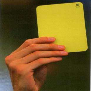 Dupa ce a fost fluierata reluarea jocului, cartonasul verde este pus pe masa si va ramane acolo. |