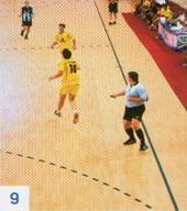 in aer, in timpul executarii unei aruncari de la 7m = fluierati reexecutarea aruncarii, indiferent daca mingea a intrat sau nu in poarta (2:4).