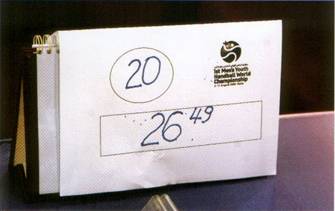 Atunci cand echipele revin pe teren, scorerul si cronometrorul le inmaneaza cartonasele verzi |