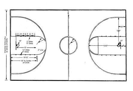 Semicercurile sunt prelungite prin linii paralele cu liniile de tuse. Centrul semicercului se gaseste la 1,575 m de la mijlocul liniei de fund, fiind masurata de la marginea interioara a acesteia.