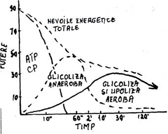 -hiperreactivitatea sistemului cardiovascular si respirator in perioada postefort: pe masura ce durata efortului se prelungeste peste 7-10 s, ajungand la aproximativ 20 s, creste productia de energie pe cale lactacida.