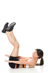 6. Va asezati cu spatele pe podea. Picioarele drepte, incordate, varfurile intinse. Va ridicati cu mainile in fata atat cu trunchiul cat si cu picioarele, in mod egal, astfel incat sa alcatuiti un triunghi. Se fac 10 astfel de exercitii in doua serii.