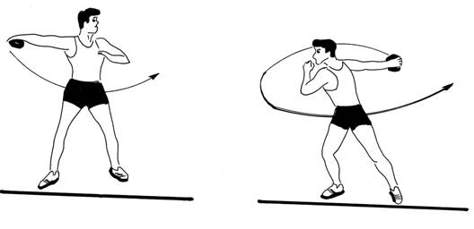 In ambele situatii se va tine cont ca in momentul transferului greutatii pe piciorul de pe partea bratului aruncator sa se faca odata cu efectuarea unei balansari spre inapoi a bratului aruncator.