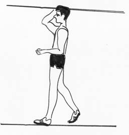 Se urmareste mentinerea bratului aruncator relaxat si situat deasupra capului.