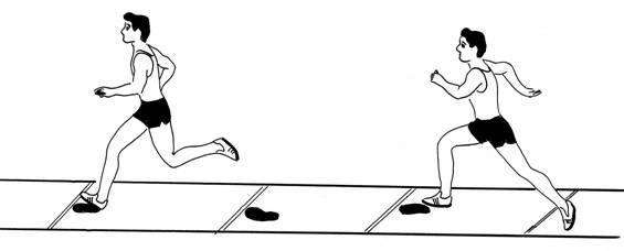 -starturi de jos cu accelerare de la start si trecere pe sub o sfoara sau un elastic asezat transversal pe pista la 6-8m de linia de plecare,