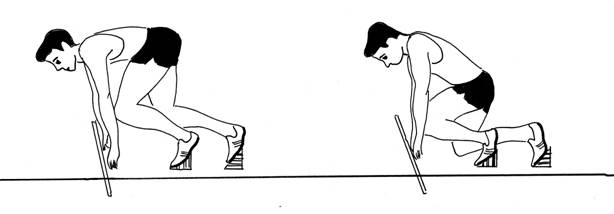 -starturi din picioare, cu greutatea repartizata pe piciorul din fata, piciorul din spate sprijinit inapoi, cu plecare libera si la comanda,