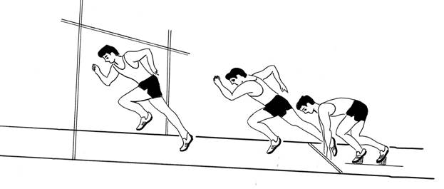 -plecare din pozitia ghemuit, liber si la comanda, cu un picior in spate la o talpa,
