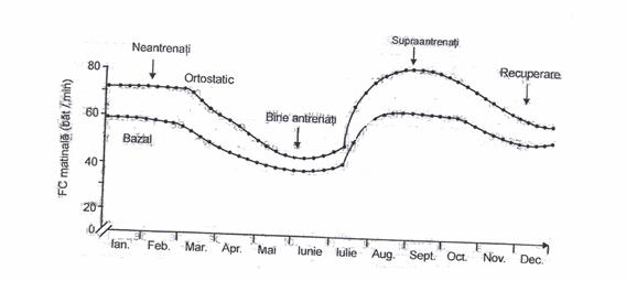 Figura Efectele antrenamentului si supraantrenamentului asupra frecventelor cardiace matinale, bazal si ortostatic