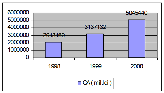 Analizand datele prezentate in tabelul nr. 1.4.2. si tabelul nr. 1.4.3. se observa ca CA corectata cu rata de crestere a preturilor (practic cu rata inflatiei) a inregistrat o crestere mult mai modesta, adica o crestere reala de doar 0.67% in anul 1999 fata de anul 1998, respectiv 14.47% in anul 2000 fata de anul 1998.