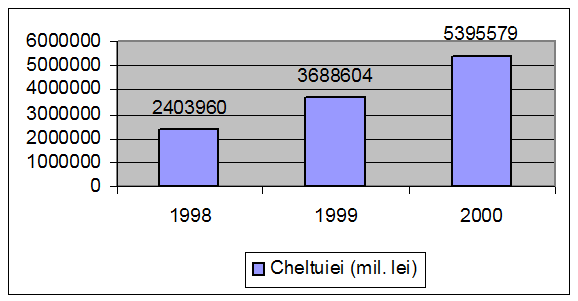 Sporul absolut al cheltuielior efectuate de S.C. Oltchim S.A. inregistreaza de asemenea cresteri in perioada analizata. Astfel, in anul 1999 fata de 1998 cresterea este de 1.284.654 mil. lei, procentual insemnand o crestere de 53,43% si, respectiv, un spor absolut de 1.706.975 mil. lei, in valoare relativa reprezentd 46,27% (tabel nr. 1.4.4).