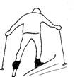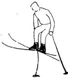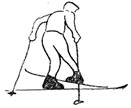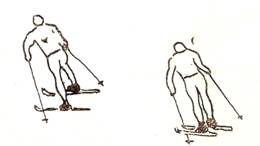 la nivelul cozii schiului de sprijin. Celalalt schi i se alatura, de asemenea, printr-o miscare de rasucire a piciorului spre exterior.