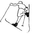 Panta este abordata frontal, deplasând alternativ schiurile de o parte si de alta a liniei de panta. Vârfurile schiurilor sunt asezate divergent, pe muchiile interne, iar betele sunt înfipte înapoia legaturilor, fixate cu podul palmei. Asezarea schiurilor si actiunea betelor împiedica alunecarea înapoi. Înclinarea pantei determina unghiul de divergenta al schiurilor, plasarea betelor si aplecarea corpului înainte.