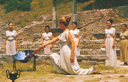 Flacara olimpica aprinsa dupa un anume ceremonial in Olympia este cea care este purtata de torta olimpica si care va arde in stadionul olimpic pe perioada desfasurarii Jocurilor Olimpice.