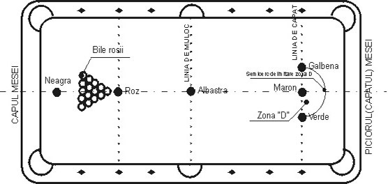Linia de jos (a mesei) 'Baulk-line' si zona de jos (a mesei)