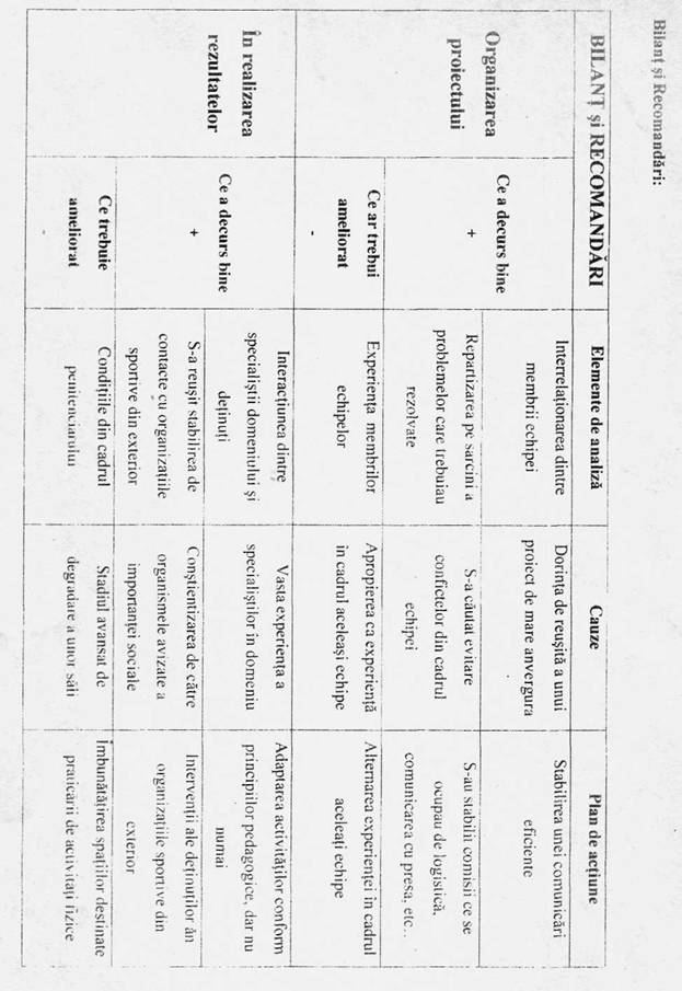 Concepea un proiect destinat sportului pentru toti urmarind etapele prezentate mai sus!