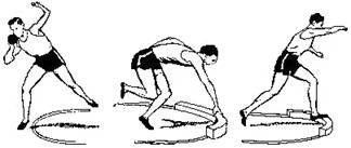 - miscarea de aruncare propriu-zisa, incepe din pozitii de sprijin pe un picior indoit, dar acest moment trebuie redus cat se poate de mult, iar atletul sa realizeze trecerea cat mai rapida in sprijin bilateral, sprijin corect pentru efortul final.