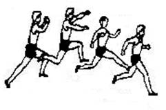 elan scurt de 3 pasi, desprindere - aterizare in pas saltat, in groapa si continuarea alergarii; bataie in spatiu de 50cm;
